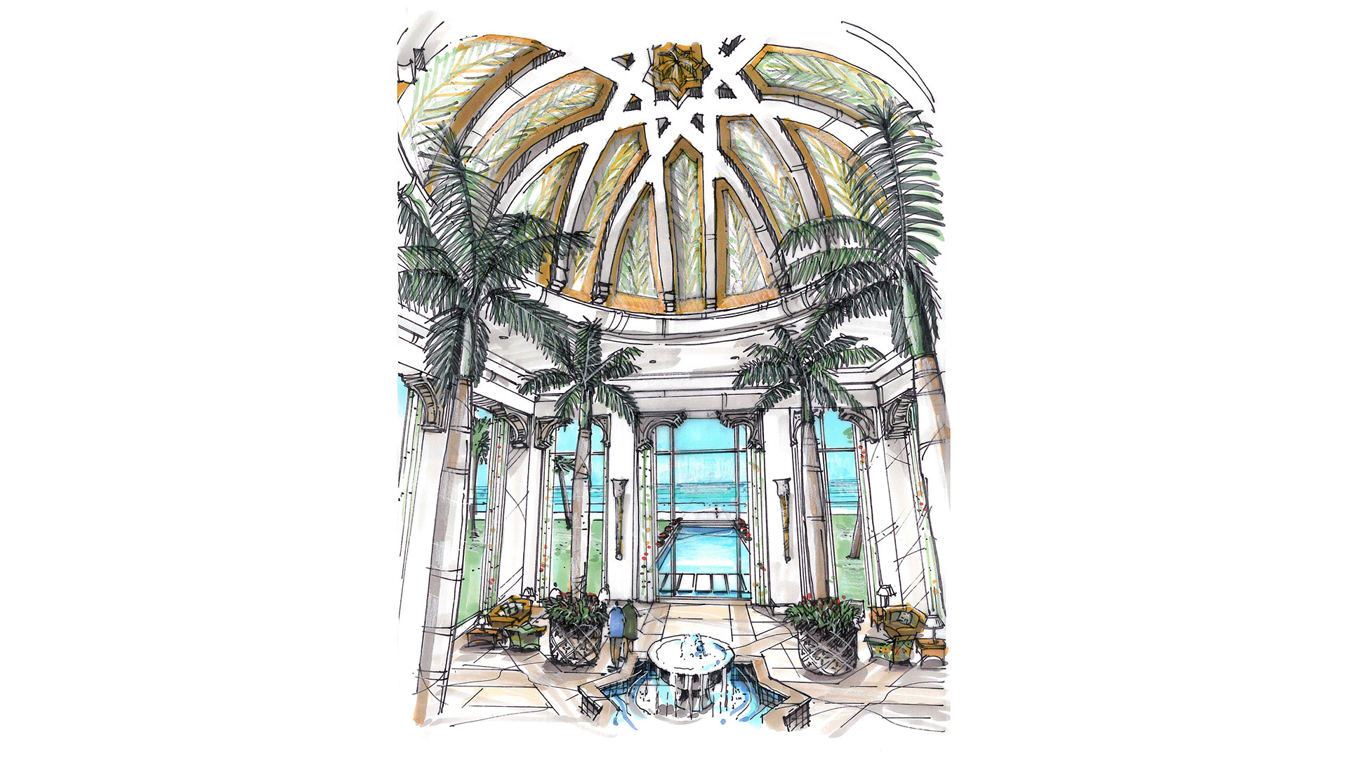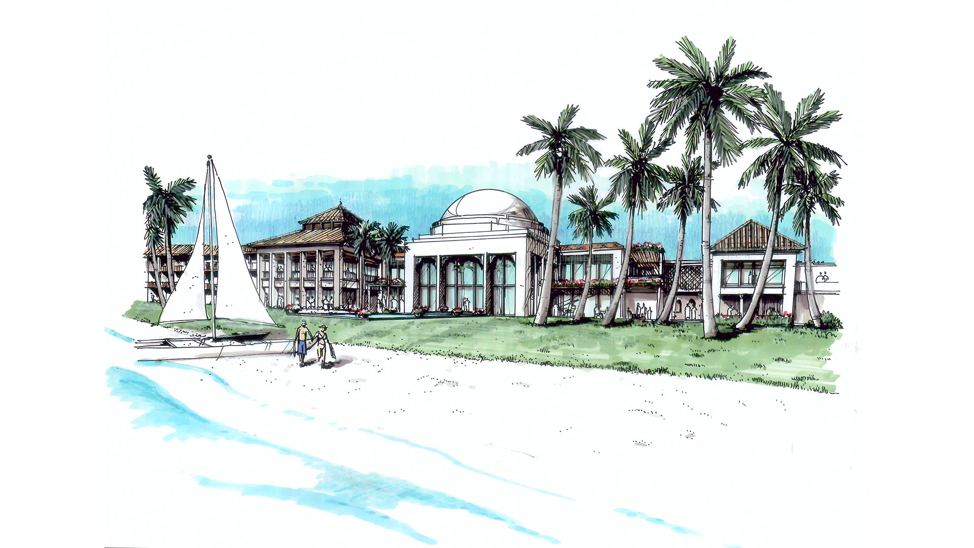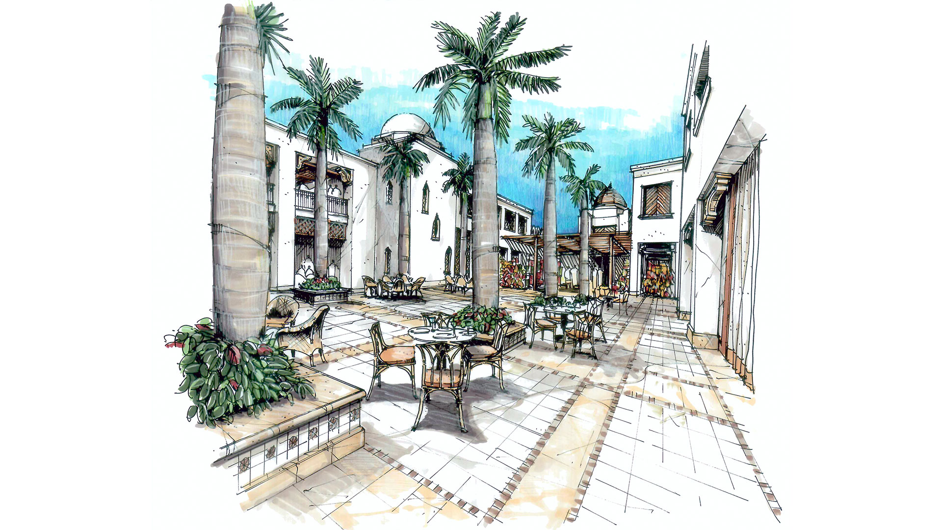 The site design celebrates three white sand beaches that lead to crystal clear blue waters, juxtaposed with course volcanic rock outcrops. The design of the hotel embraces the island’s Arabic roots, with a souq (Arabic market) as a central organizing feature, bounded by restaurants and retail. The architecture’s language references the Arabic culture, as well as colonial and traditional island building typologies.