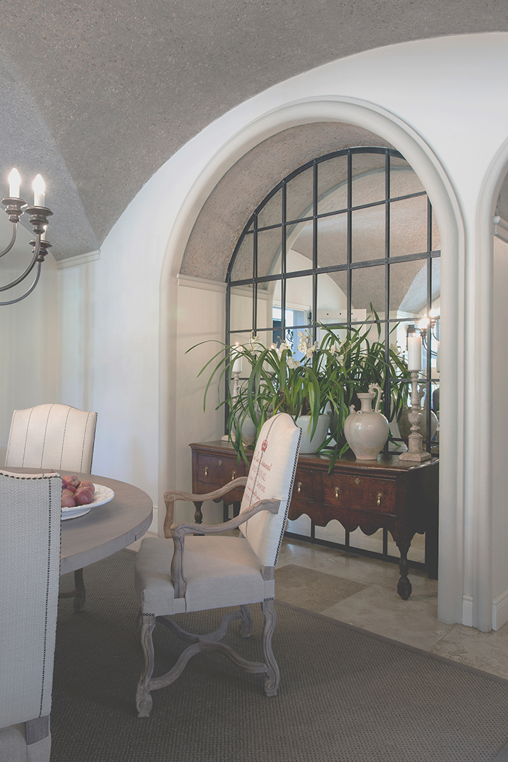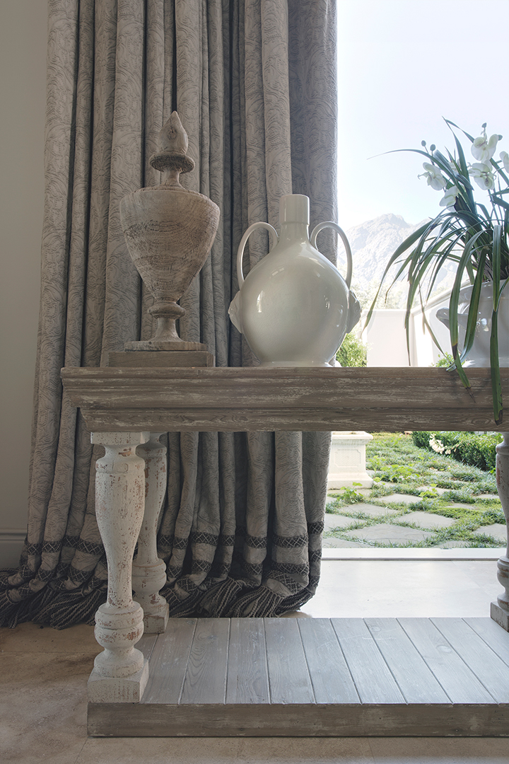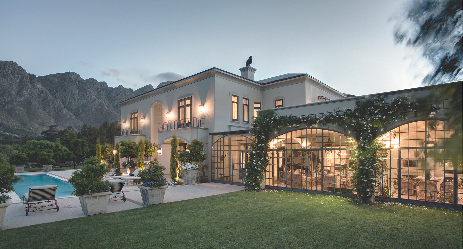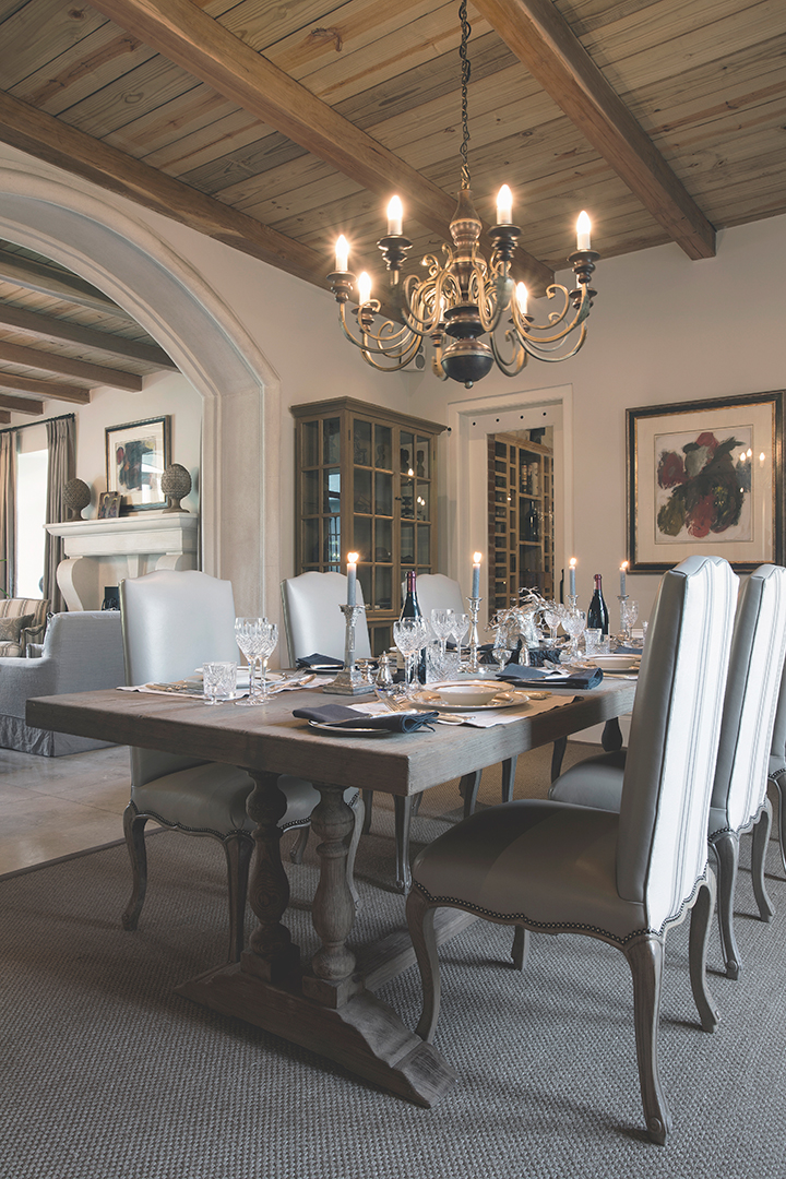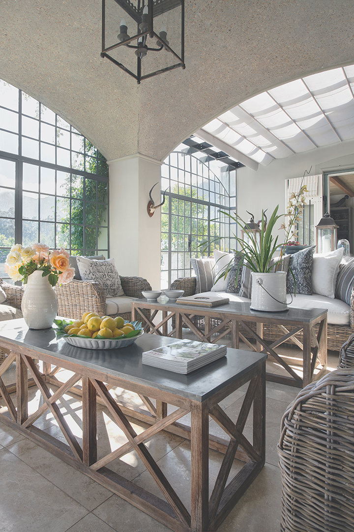 Set amongst vineyards in the beautiful Franschhoek valley, this French inspired villa boasts superb mountain views. The interiors are decorated with a mix of classic and country pieces to compliment the style of the home with generously proportioned upholstered items to create a comfortable and stylish home.