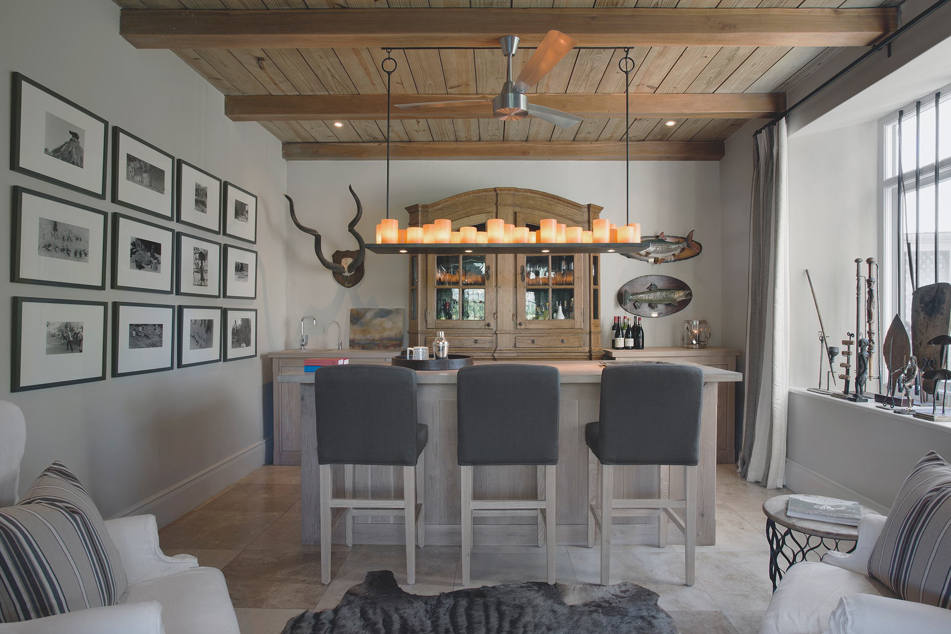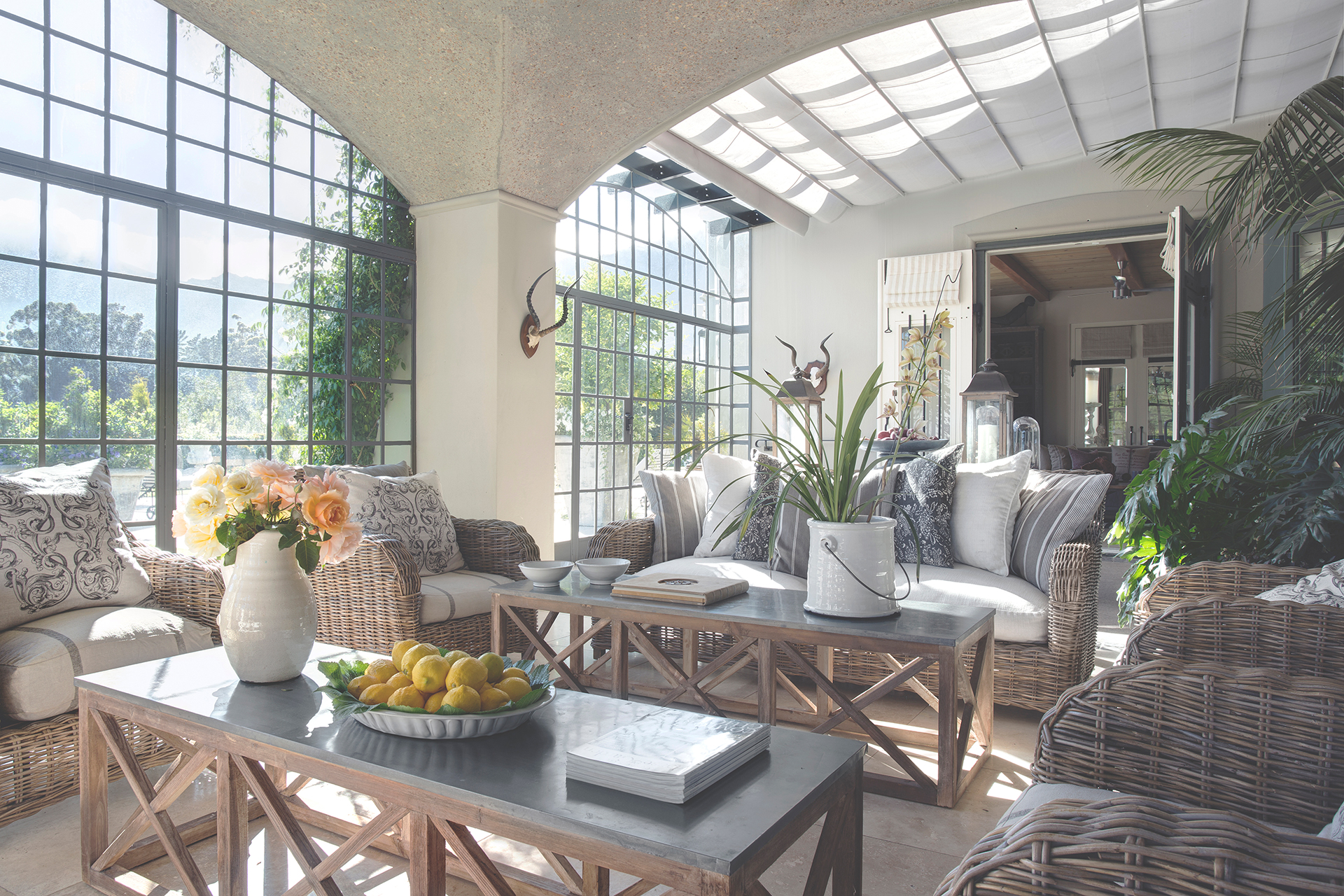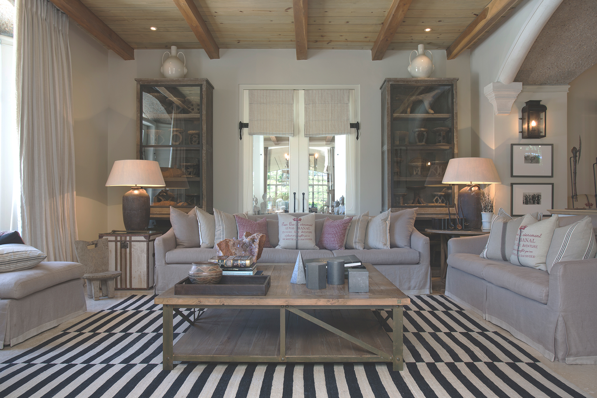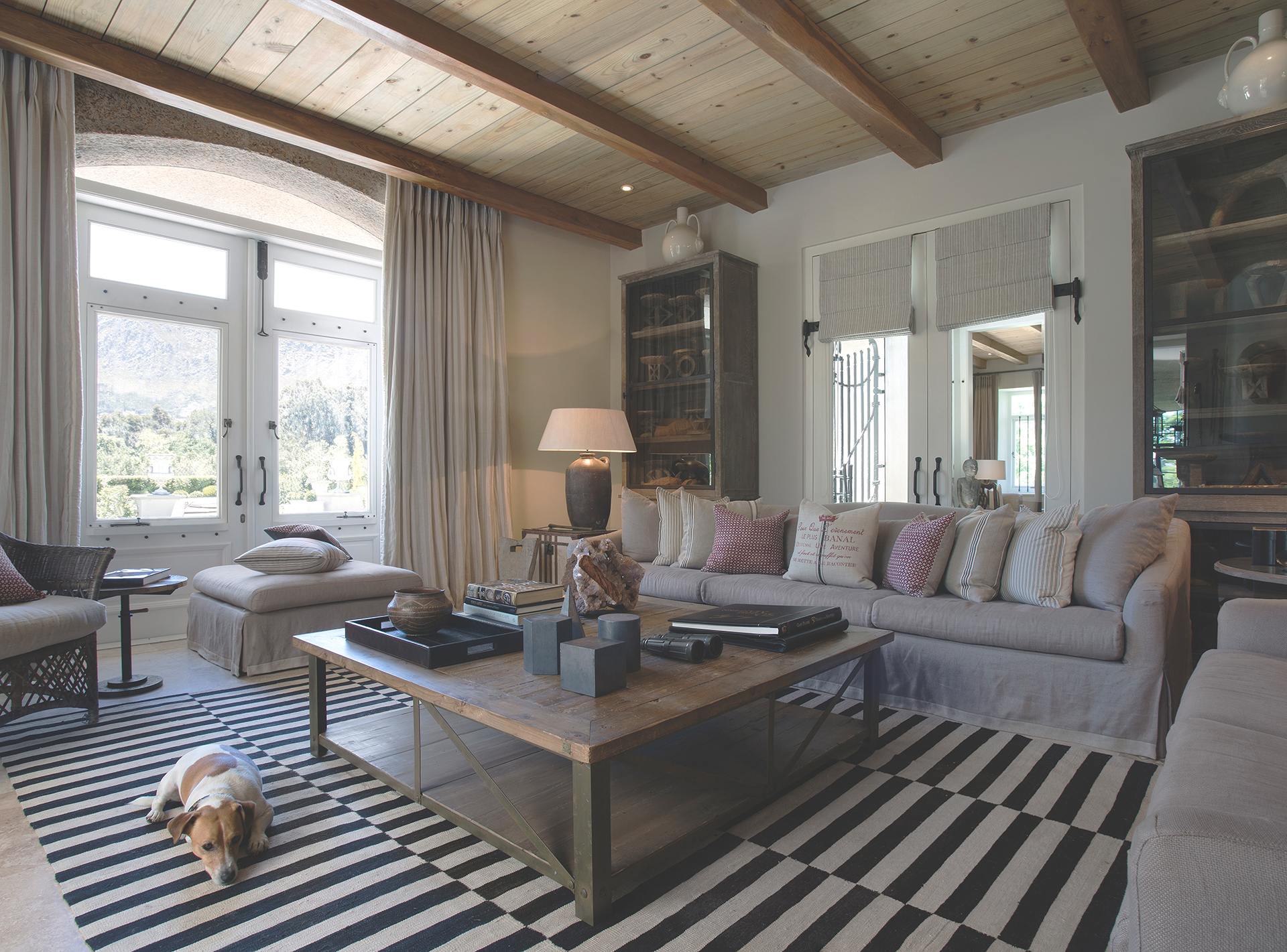 Set amongst vineyards in the beautiful Franschhoek valley, this French inspired villa boasts superb mountain views. The interiors are decorated with a mix of classic and country pieces to compliment the style of the home with generously proportioned upholstered items to create a comfortable and stylish home.