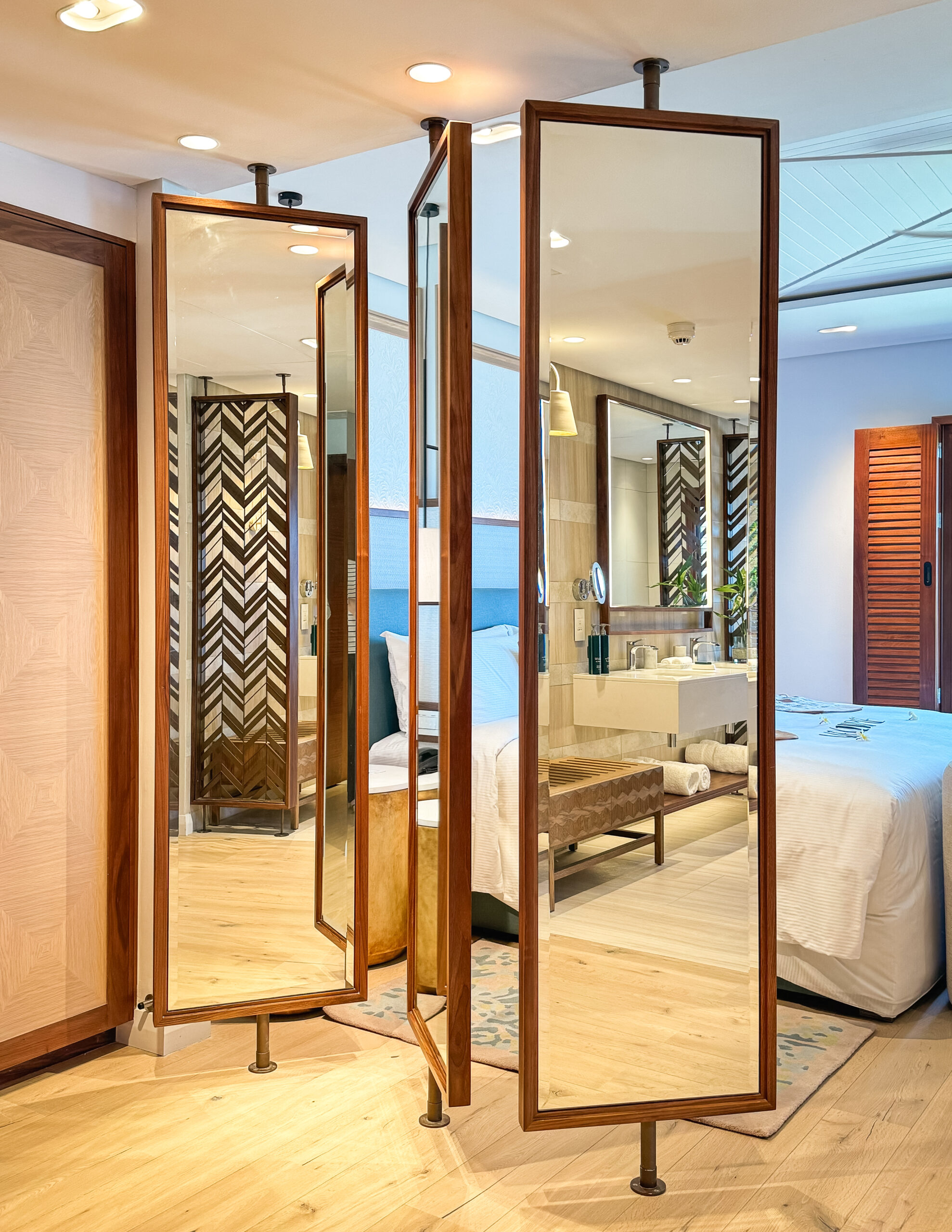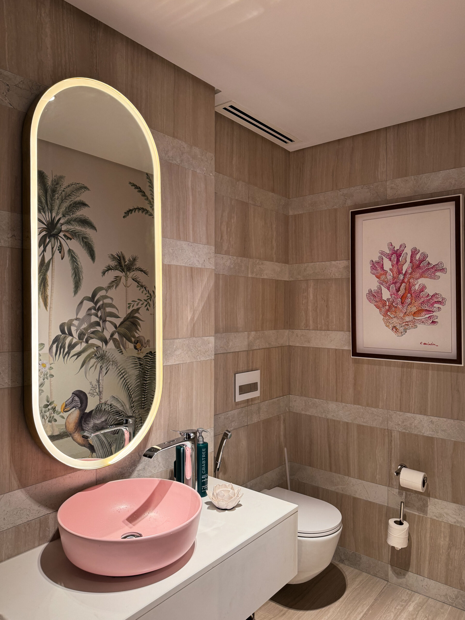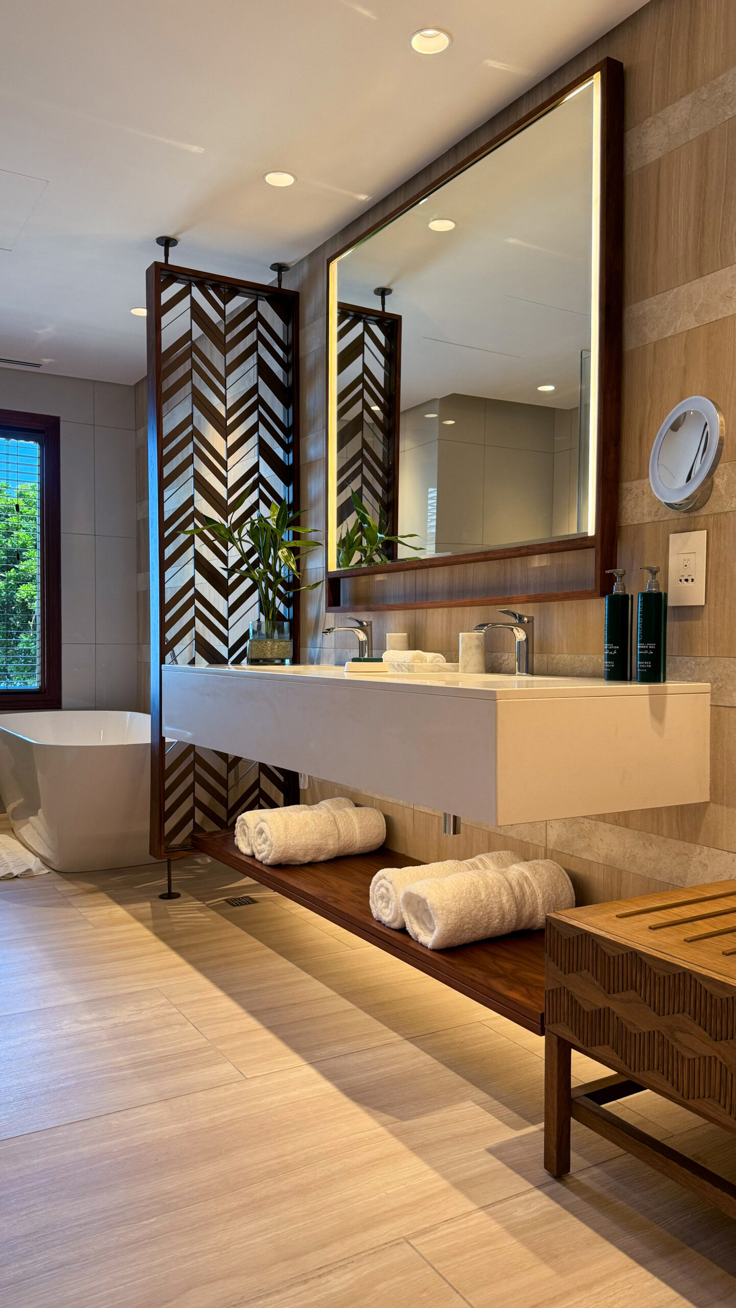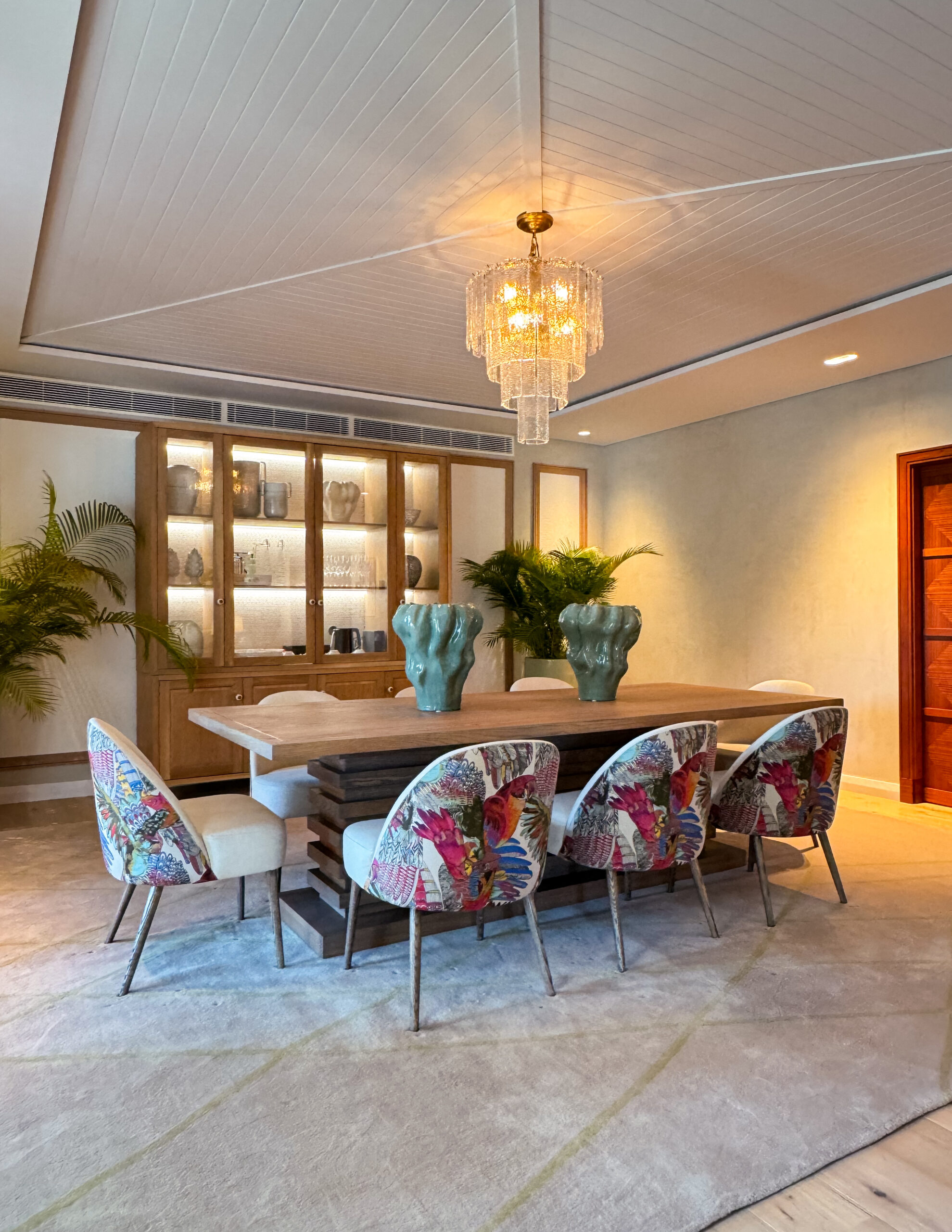 Nestled among swaying palm trees on the upper floor, the Presidential Suite at the Hilton Mauritius Resort and Spa delivers an unparalleled luxurious guest experience. Boasting two guest bedrooms with ensuite bathrooms and private balconies directly overlooking the ocean, alongside a spacious lounge, dining area, and a sprawling terrace with built-in seating, the Presidential Suite emerges as a serene oasis, ideal for an indulgent tropical retreat. Harmonizing calming neutral tones with vibrant pops of blues, greens and pinks, the space exudes sophistication, freshness and an undeniable sense of tranquillity, promising guests an unforgettable stay.
