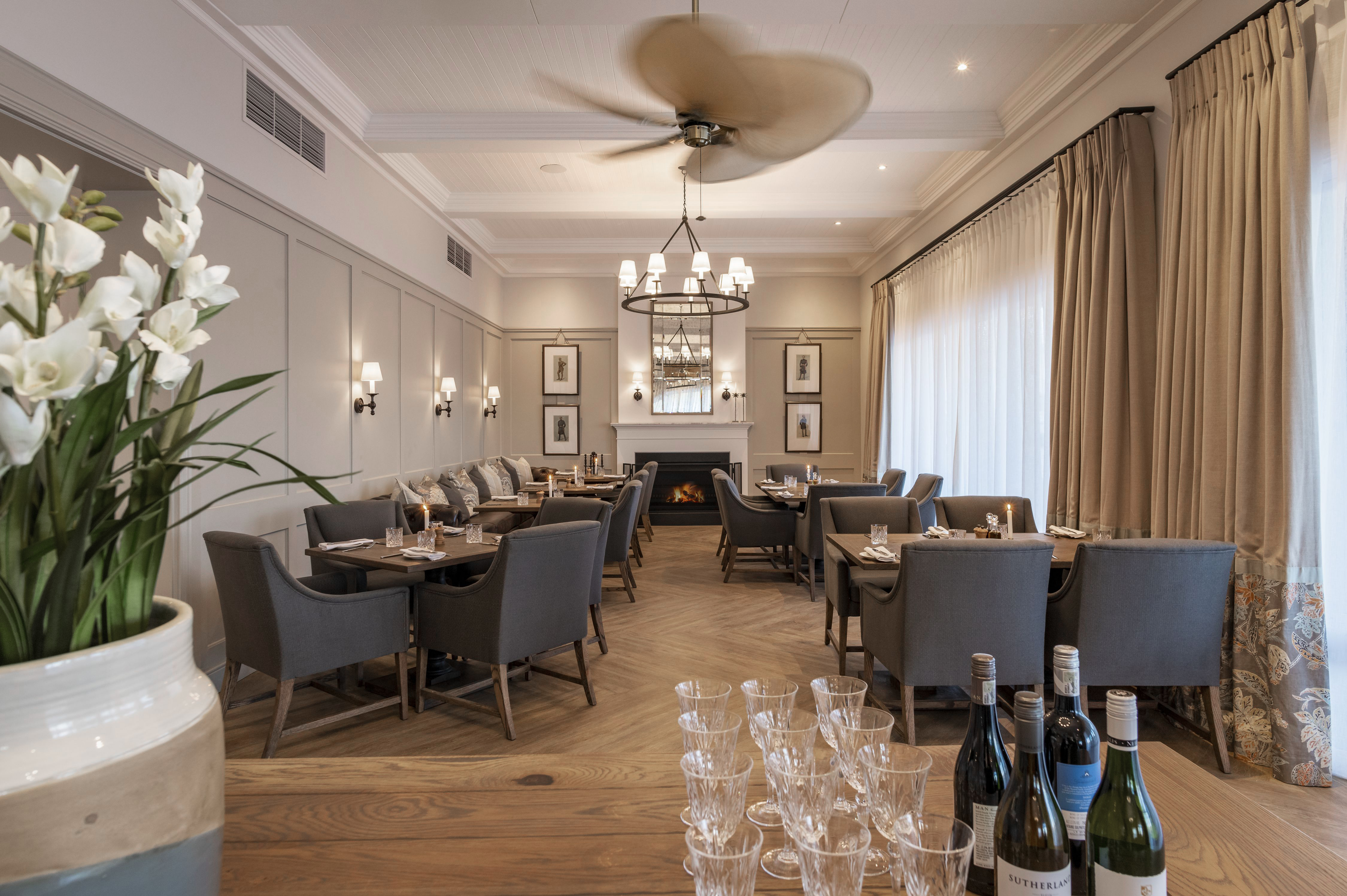 Public areas are all focused on the views and the interiors, like the guest rooms, are designed with traditional paneling, soft and warm colours, statement joinery items like the oval bar and decorated with generous colonial furniture, accented with rich leathers and luxurious linens.