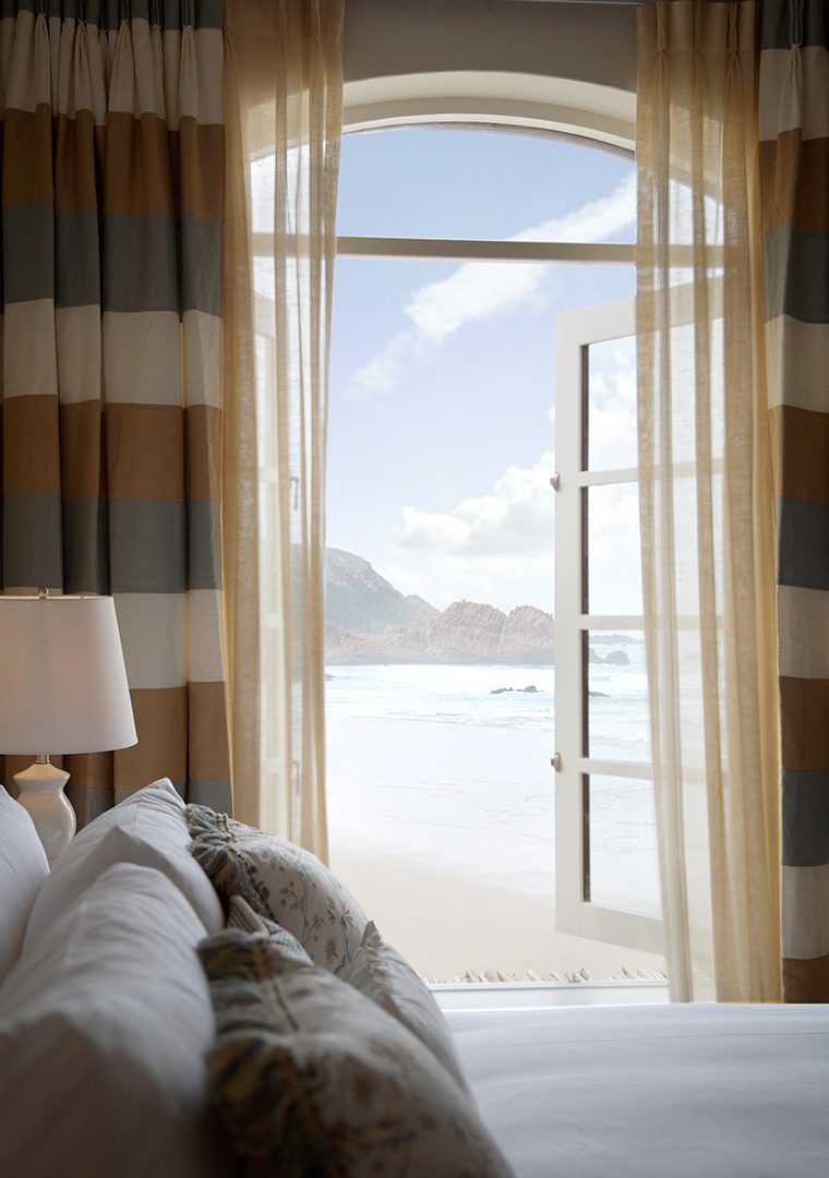 This historic structure, built into a cliff-face and with its own private beach, was resurrected from its derelict state. Careful site design and landscaping integrated it with the site, and with great attention the architecture was converted to its current layout. Along with its new configuration, meticulous detailing was given to the interiors and furnishings to transform the stone building into a magnificent residence.