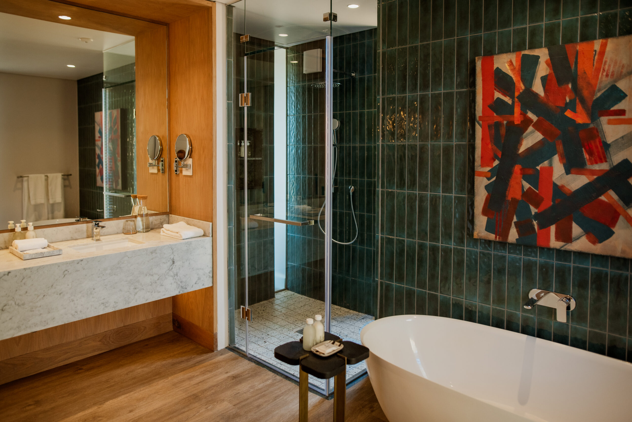 The interiors of Sarili are a celebration of contemporary African design, thoughtfully curated to reflect the legacy of the Xhosa people. The villa’s aesthetic combines modern luxury with traditional craftsmanship, featuring a rich colour palette. Warm reds, deep ochres, and vibrant blues evoke a sense of local heritage and history.